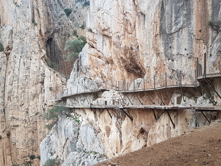 This is often described as one of the best walks in Spain, situated about one hour's drive north of Malaga. The walk involves walking through the spectacular gorge- Desfiladero de Los Gaitanes-on walkways attached to rock 100m above the valley. A head for heights is imperative. It is only accessible with a timed ticket and as it is very popular it requires booking well ahead especially in the busy summer months. It can be accessed by train from Malaga or by car. The whole area is very beautiful with lakes and pretty scenery.