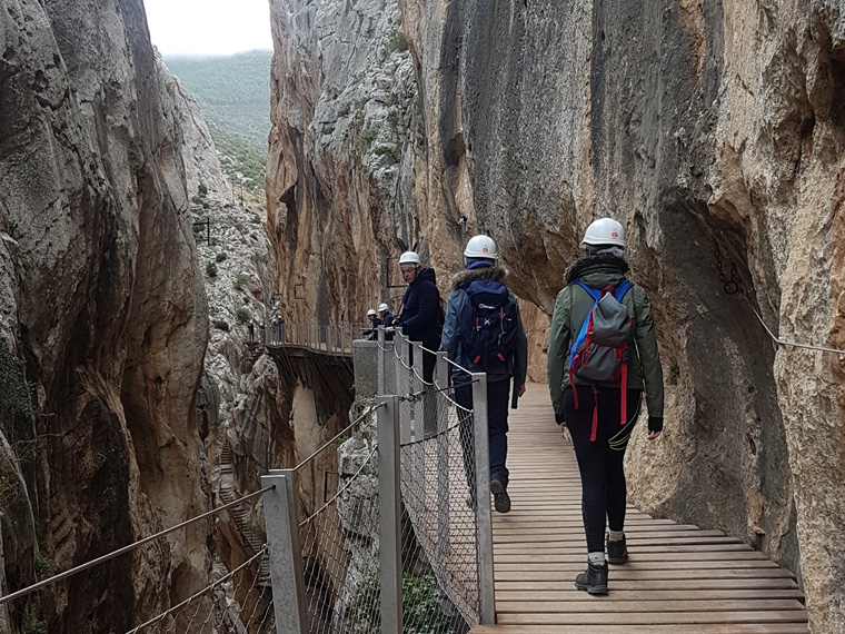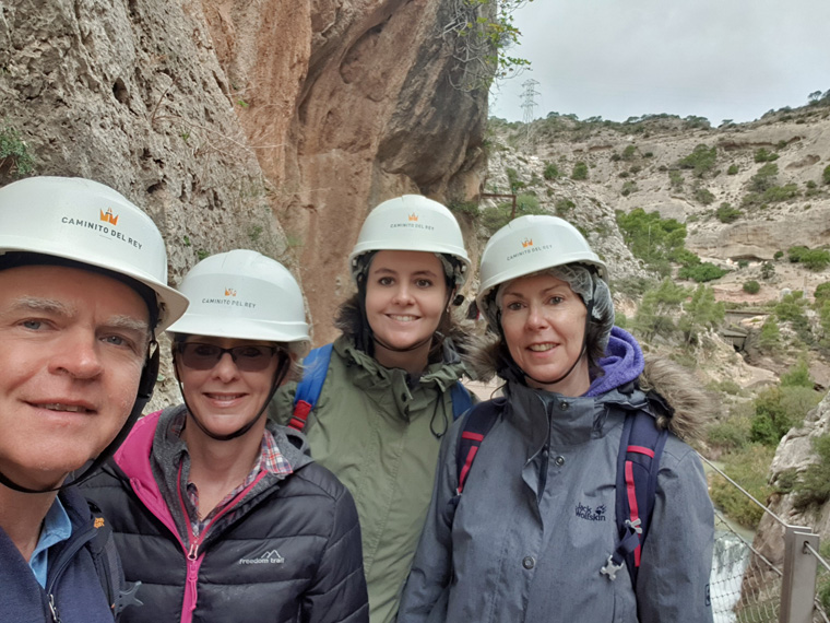 It is the second time that we have completed this trip, I would recommend it and it is thoroughly enjoyable at the same time as being slightly scary. We were joined by my sister Sheila and niece Iona, who thoroughly enjoyed it too. Only in China have I experienced a similar walk, (though no hard hat on there) with boardwalks built into the cliff face. It is good value for money, making a lovely day out, situated about one hour's drive north of where we were staying in Malaga.