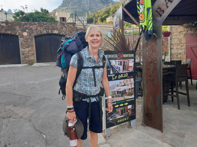 There were 2 pairs of bunk beds in our room with an en-suite bathroom, and charging points were available in the room and in the kitchen. We shared with a lady who had just walked from south to north in 15 days. She looked worn out, and said there were just a few patches of snow, and we did not need crampons. We were concerned as we had too much kit. At this point Dave got rid of an old softshell jacket and merino wool top. Outside the post office we very fortunately found a cash machine. At this point we did not realise it was the last one before arriving in Porto- Vecchio, in 2 weeks time.