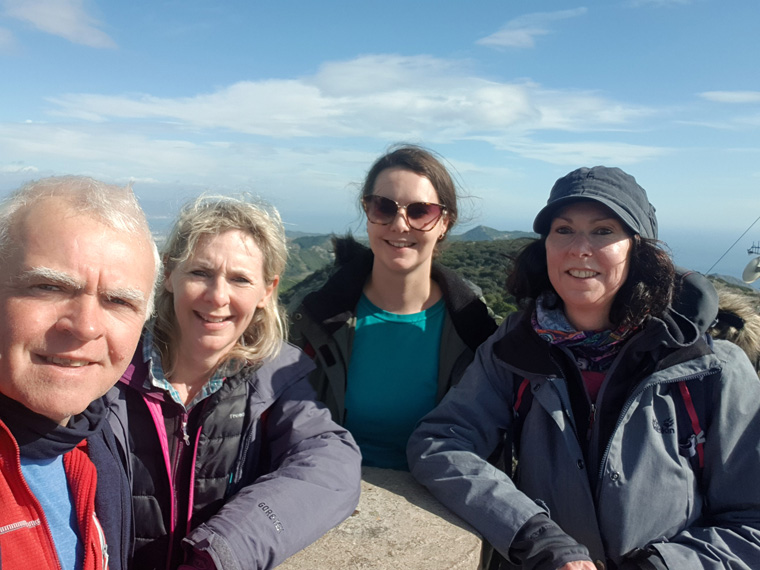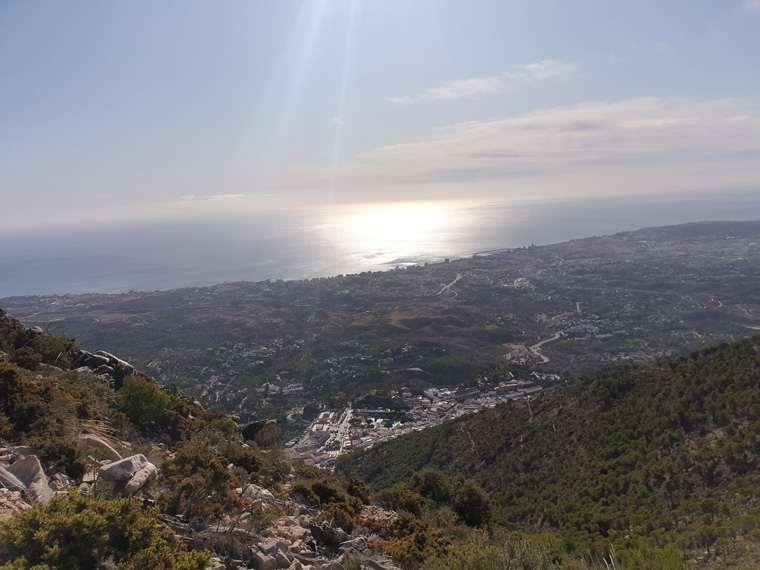 We were so happy to be there, sitting eating our lunch with tremendous views in all directions- to Africa, Gibraltar, Malaga and the mountains behind and all of the coast. We imagined what it would have looked like 50 years ago without all the development and motorway. It had been well worth the climb, with sublime views. The walk had been very quiet, we met the first other walkers of the day near the top, and some cyclists who had arrived from Alhaurin.