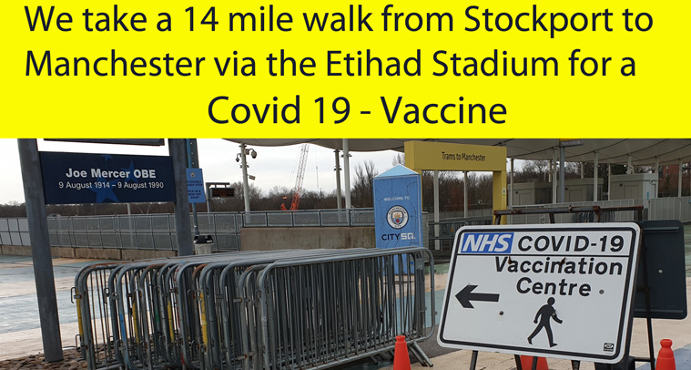 Vaccine Day, Stockport to the Etihad Centre, to Manchester